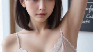 【AI腋フェチ画像】ラテックス素材のビキニと廃屋のAI腋フェチ画像