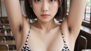 貧乳と腋毛。とても素晴らしい組み合わせだということはこのブログでもなんども語ってきました。もうたくさん見たと思う人もいるかもしれません。代り映えのしない画像だったとしても、まだまだ貧乳と腋毛の画像を作っていきます。わたしは貧乳と腋毛が好きだから。