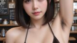score_9, score_8_up, score_7_up, photorealistic, high resolution, highly detailed face, japanese female idol, blunt bangs, arm behind head, hairy armpit hair, flat chest, large areola, upper body, A small wooden library, Nostalgic and melancholic atmosphere