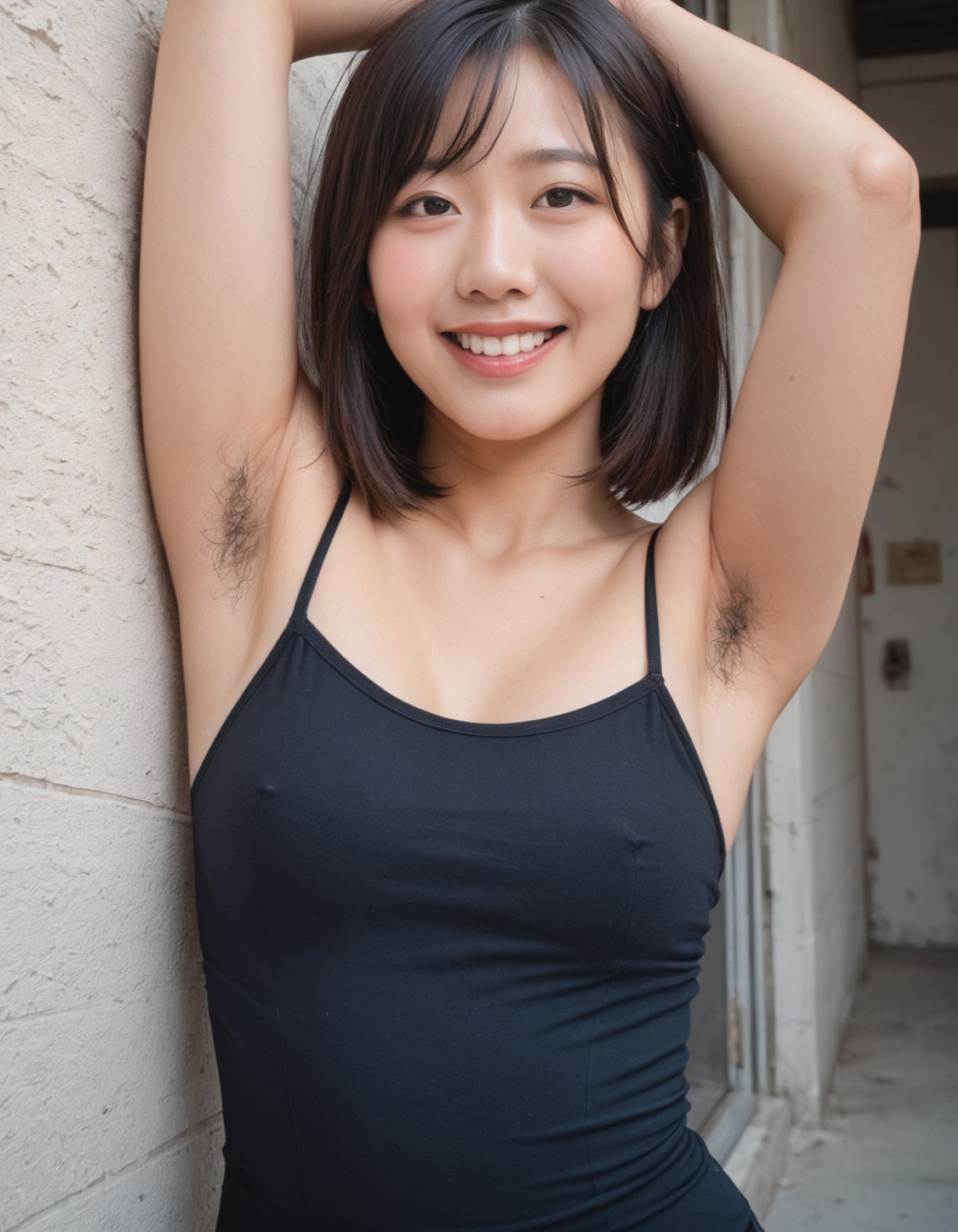 そうは言っても、昔も今も、わたしのようなおっさんが真冬でも真夏でもかわいい女性の脇の下を凝視することはできません。腋毛があってもなくても、見る機会はほぼありません。そこで、AI美女に腋を見せてもらうことにします。腋毛もお願いします。かわいい女性の腋毛が見たいです。という気持ちで作りました。